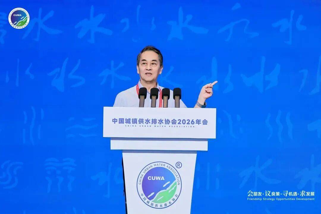 中国水协会长章林伟在会上致辞。他指出,过去一年,在国家政策指引和全行业同仁共同努力下,城镇水务行业攻坚克难、稳步前行,坚守初心使命,在服务国家、群众、社会和行业等方面积极探索,取得了喜人的成绩。2026年作为“十五五”承上启下的关键一年,也是社会经济全面迈向高质量发展的重要一年,城镇水务行业肩负着保障民生福祉、服务国家战略、推动绿色转型的多重使命,唯有紧跟《中华人民共和国国民经济和社会发展第十五个五年规划纲要》导向,凝心聚力、守正创新,才能实现新突破、展现新作为。