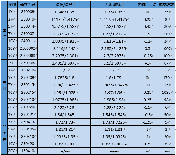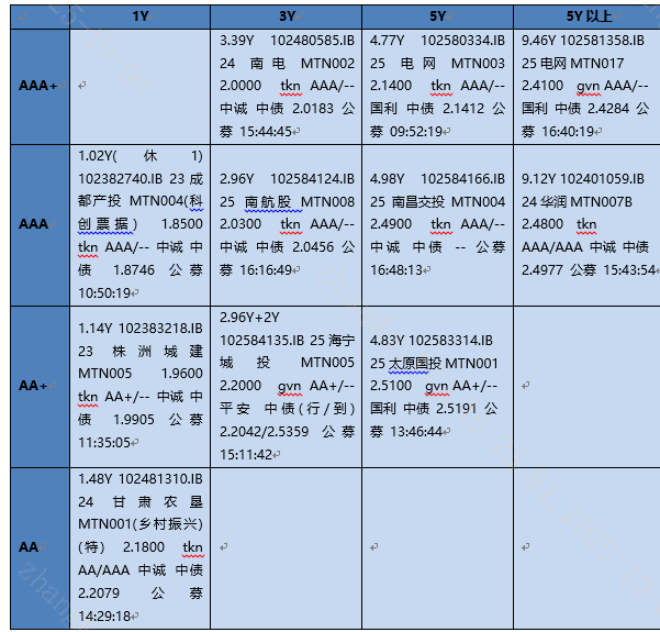 今日公司债企业债交投一般,收益小幅下行,需求集中在1-3年AAA品种,收盘成交在估值-2附近。银行债交投一般,收益小幅下行,收盘成交在估值-2附近。