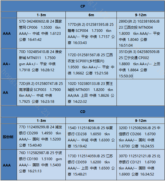 今日中票交投清淡, 收益小幅下行,需求集中在1-3年AAA品种, 收盘成交在估值-1附近。