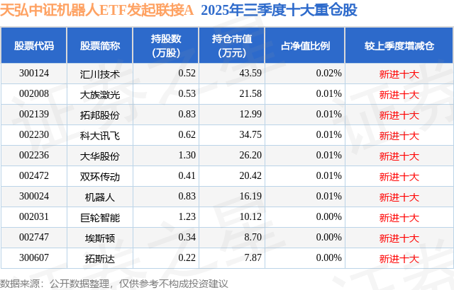 华体会- 华体会体育官网- 体育APP下载1月8日巨轮智能涨657%天弘中证机器人ETF发起联接A基金重仓该股