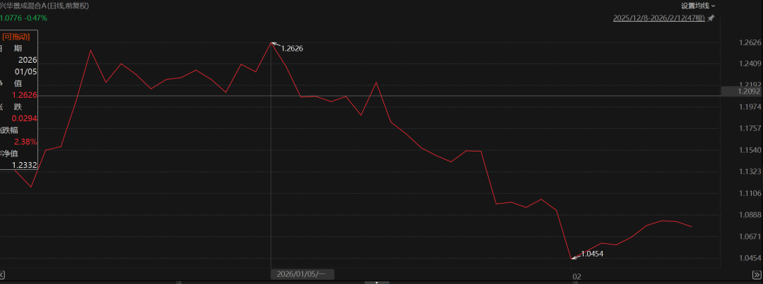 根据东财Choice数据,截至2月12日,纳入统计的主动权益类产品(A份额,平衡、灵活型取近4期股票仓位50%以上,下同)年内平均回报为6.73%,而兴华景成年内回报为亏损12.62%,在所有产品中垫底。