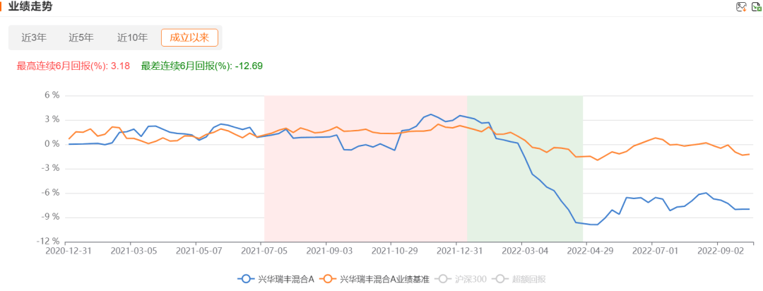 其中,2020年12月30日成立的兴华瑞丰,2022年9月28日清盘时最终净值仅剩下0.9202元。作为一只偏债混合基金录得近8%的亏损,大幅高于业绩基准同期1.23%的跌幅。