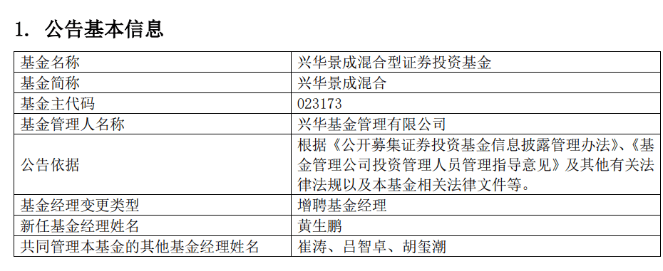 新加的黄生鹏现任兴华基金投资总监,公开资料显示,其原为益民基金基金经理,加入兴华基金前只有1只共管产品的经验,加入兴华基金后无独立管理产品的经验。