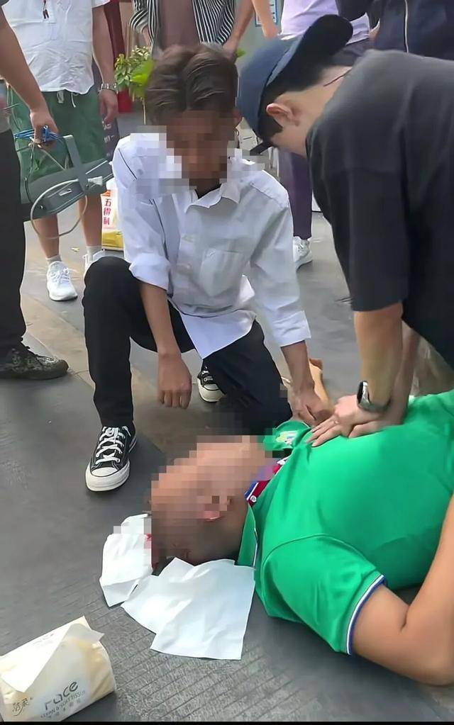 马同学回忆,他来到患病男子身旁时,男子呼吸困难,“好像嗓子被东西卡住”。他赶紧对其进行胸外按压,同时,身边又有几位好心人上前帮忙轮流按压,“几分钟后,我看到他有一些呼吸,在我们的帮助下,他嘴里的痰吐了出来,还有眨眼的动作。”